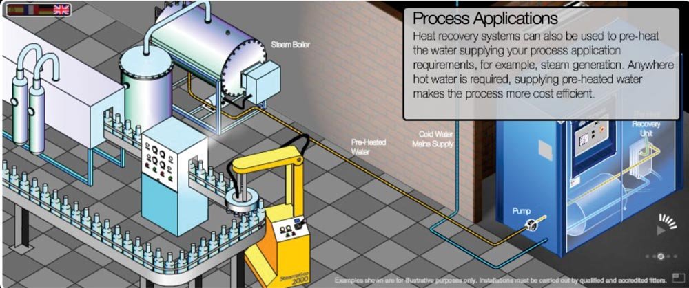 A large food processing company known for making frozen potato products use a heat recovery on a L55 and L75. It is preheating water that destined for a steam boiler, to cook the potato products. This company is saving 40,000 m³ (approx.,00,000) natural gas per year. (based on 5 INR per m³