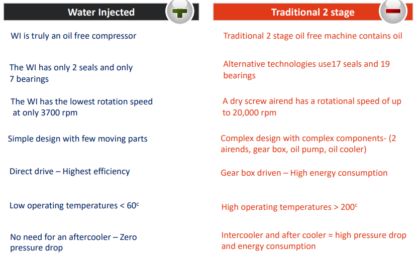 - Two stage oil free rotary screw