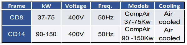 - Voltage configurations 400V/50Hz, Fixed Speed